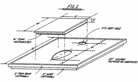 We suggest building a 30" square as shown. The lid is different from a conventional toilet in that it must close air tight. If a regular liftable seat is necessary, simply build the lid larger to cover the seat.